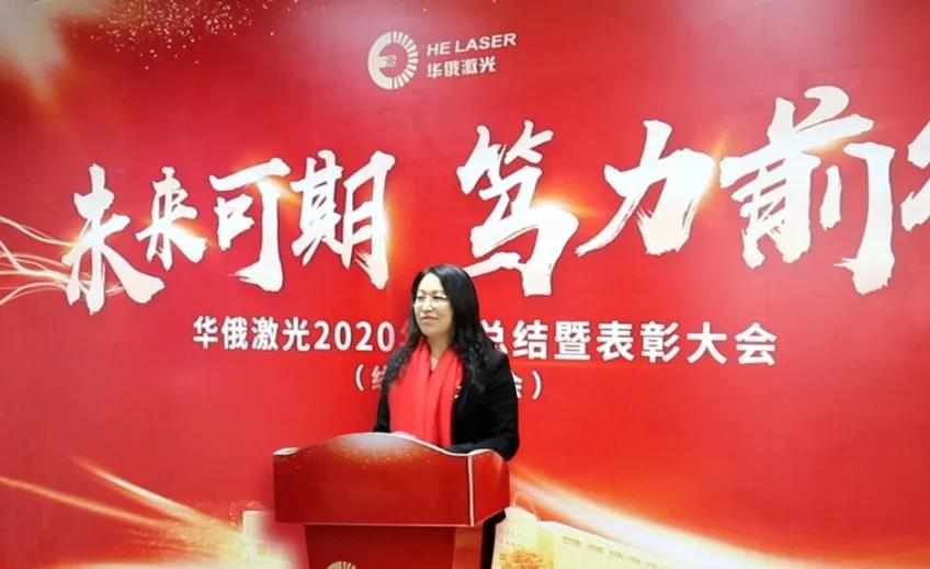 華俄激光董事長付俊女士在年終總結大會上作了《涅槃再生 篤力前行 未來可期》的致辭,與大家共同回顧了2020年公司取得的驕人成績,并指明了2021年公司的發展方向。
