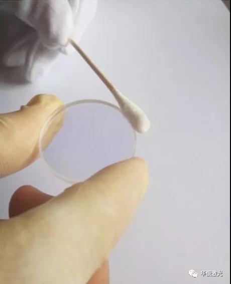 4.用丙酮浸濕絨頭棉簽,用它清潔鏡片表面,以去除在清潔過程中殘留的所有無水乙醇和拋光液殘留物。當(dāng)用丙酮進行最后的清潔工作時,請在鏡片表面輕輕拖動棉簽,拭去原先留下的痕跡,直到整個表面都被擦拭干凈為止。再用棉簽做出最后一個擦拭動作,應(yīng)慢慢移動,以確保棉簽后面的表面能立即變干,這可消除表面的條痕。某些類型的污染或損壞(如金屬飛濺物,坑洞等)是無法去除的。如果鏡片表面有上述污染或損壞,且無法清潔還原,應(yīng)放棄清潔,更換為新鏡片,以保證切割質(zhì)量。